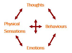 Cognitive Behavioural Therapy (CBT) is a goal orientated therapy which explores the interaction between our thoughts, behaviours and feelings (both emotional and physical).